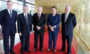 O presidente José Sarney — ao lado do ministro da Educação, Marcos Maciel — sanciona, em outubro de 1985, a lei que devolve a legalidade à União Nacional dos Estudantes (UNE), representada, em discurso, por Renildo Calheiros, prefeito de Olinda (PE) atualmente Foto: Sérgio Marques / O Globo